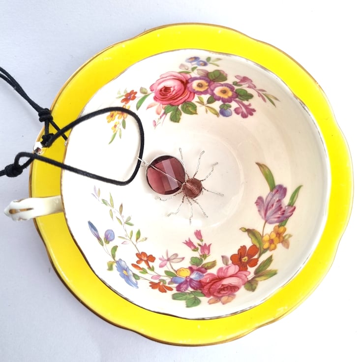 Lovingly crafted by hand this beaded spider necklace is perfect for those who find beauty in the unusual. Featuring shimmering crystal beads and wirework this necklace brings a little wild magic to any outfit.