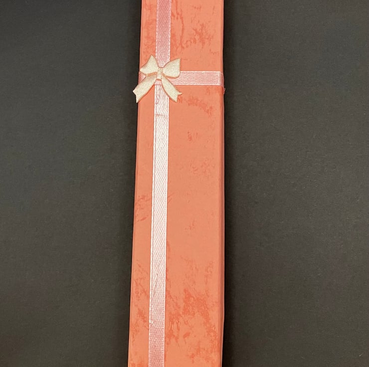 Supplied in a pink recyclable cardboard presentation box with satin ribbon and bow on.