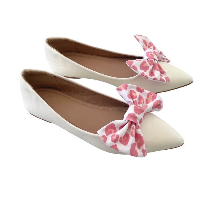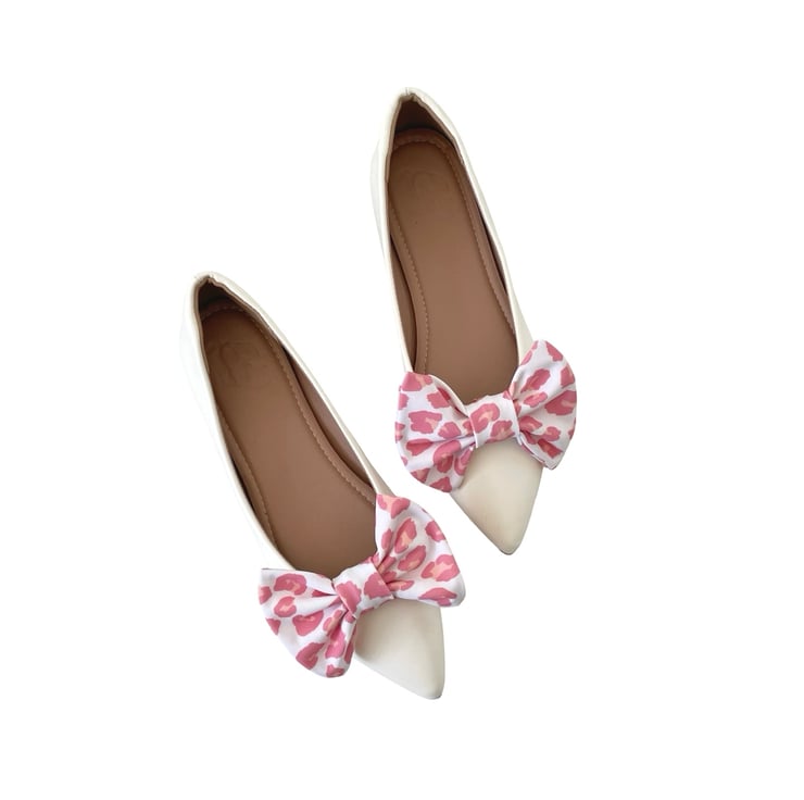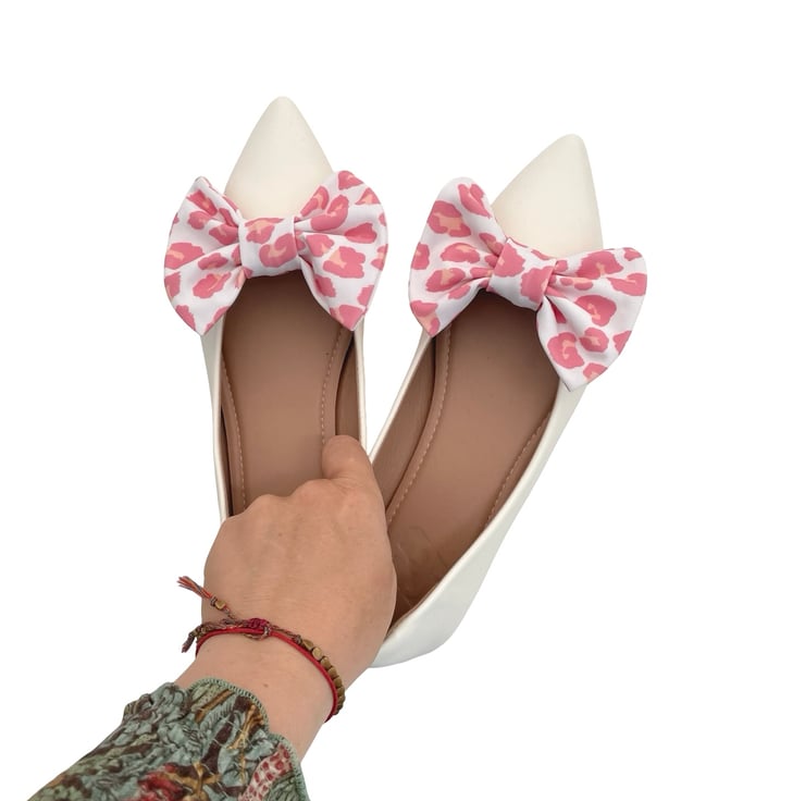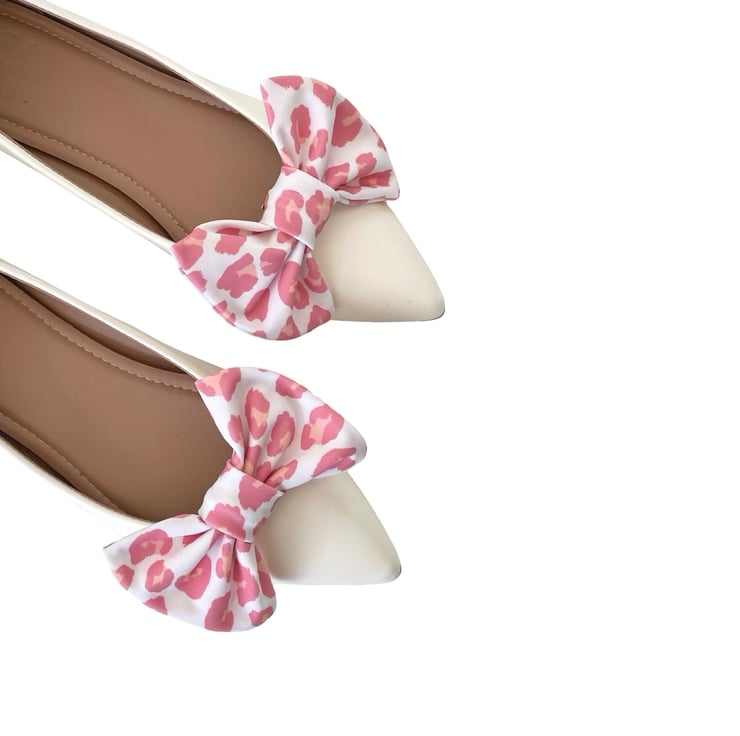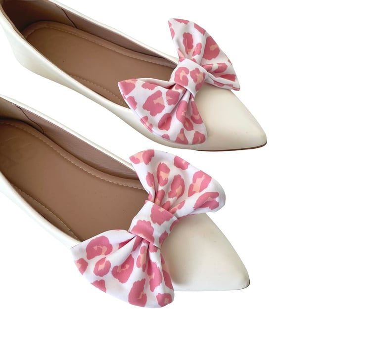 White Pink Cheetah Shoe Bow Clips Charms Handmade Cute Shoe Decor for Clogs Heel