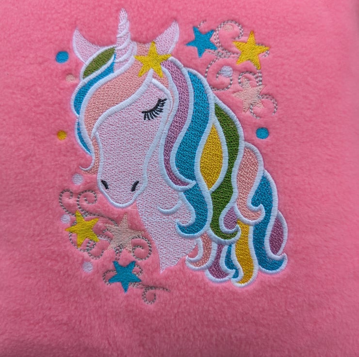 This was created to match a sweatshirt I made for our granddaughter. She loves unicorns and I wanted her to have a cosy addition to her bedroom. Something she can snuggle up with.