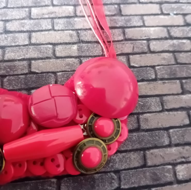 We love buttons and collect boxes and tins of them whenever we see them for sale in charity shops. We also love quirky sustainable jewellery and we have great fun choosing just the right buttons for each necklace..