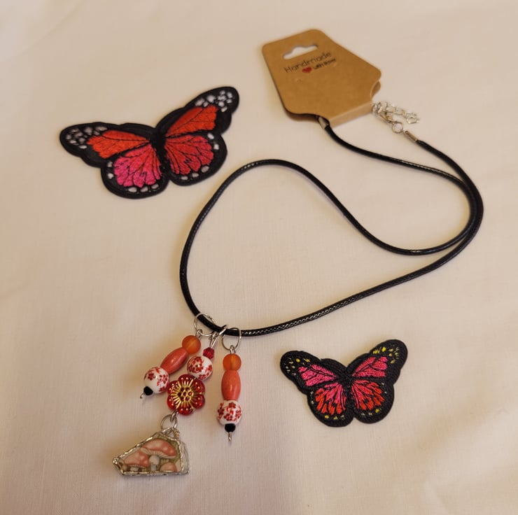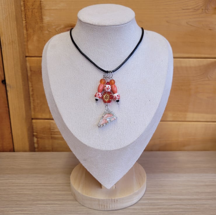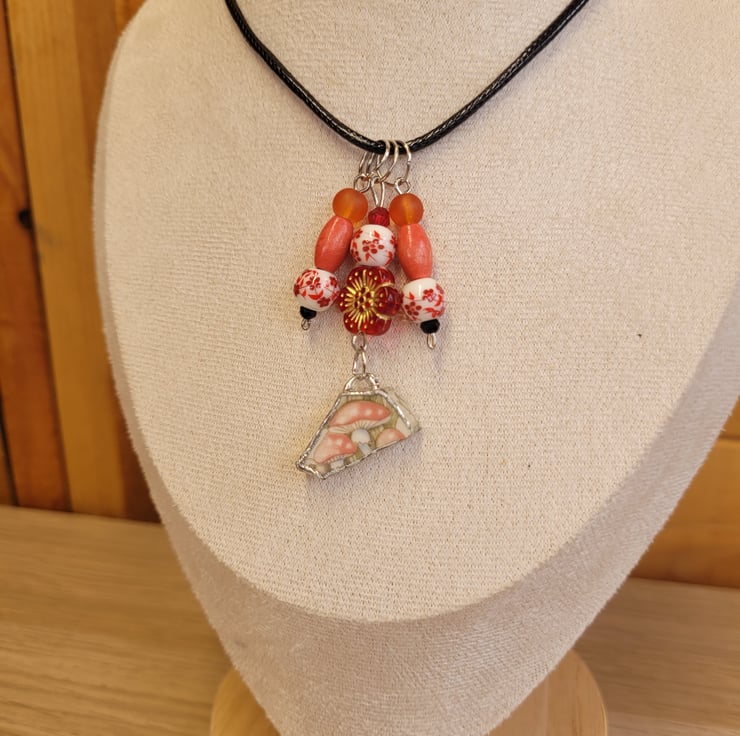 Upcycled Mushroom Ceramic Plate Necklace with Black Cord.