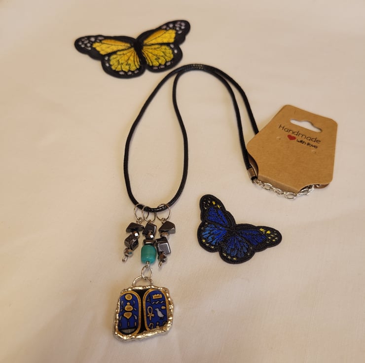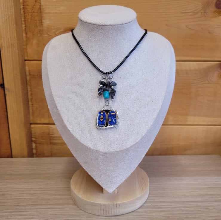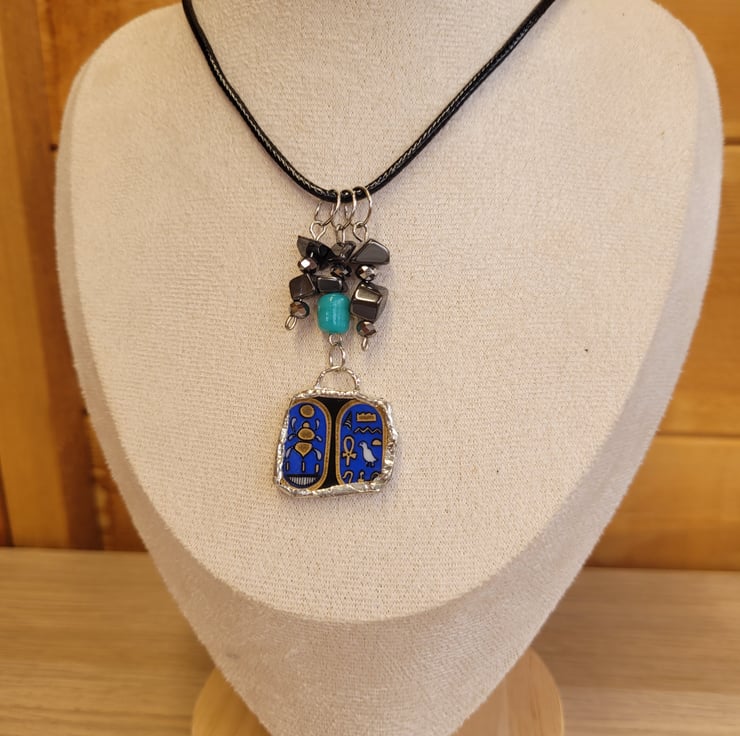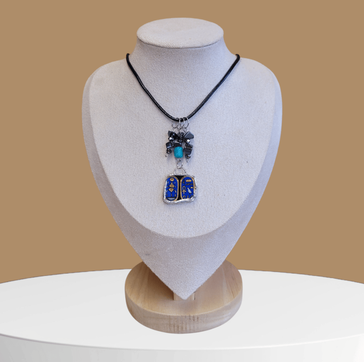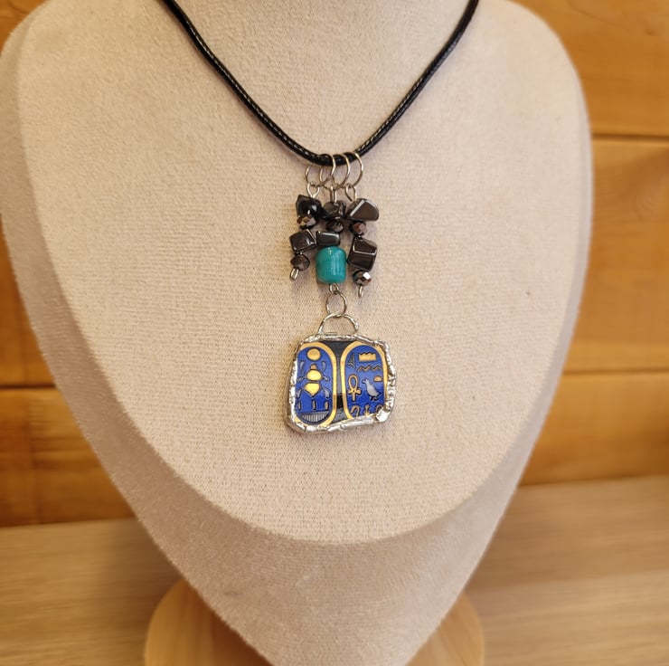 Upcycled Egyptian Ceramic Plate Necklace with Black Cord.