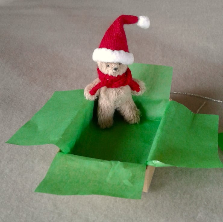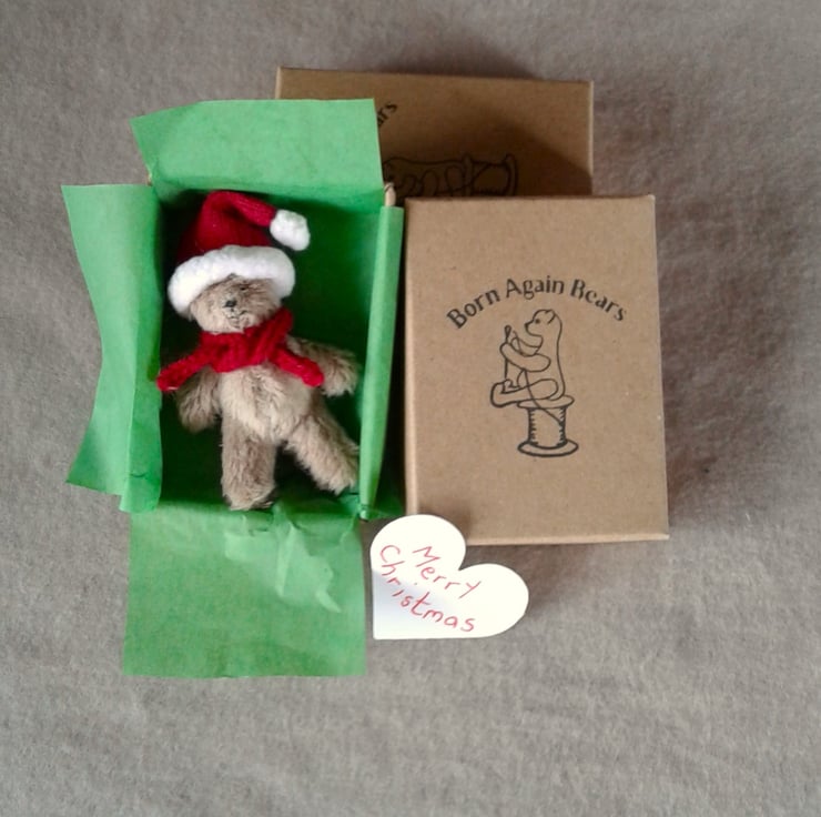 Tiny ted in a box, Christmas letterbox gift 'random act of tiny furry kindness'
