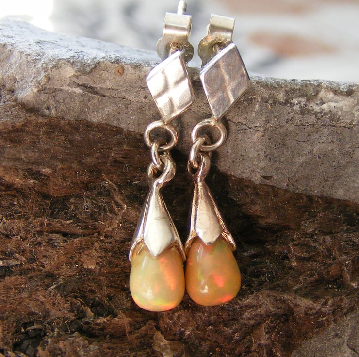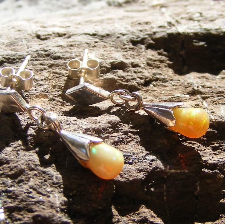 These fiery drops of opal are just so pretty. I wanted to set them in a feminie way to maximise their colour play. Inspired by flower buds on my fushias, I came up with this design - I hope you like them.
