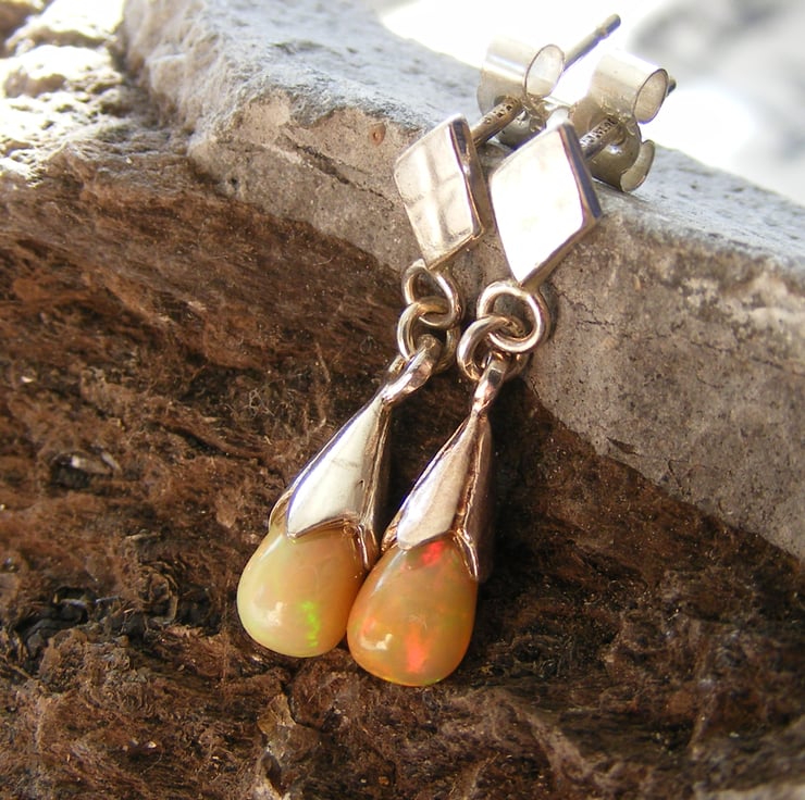 Gorgeous Ethiopian Opals are the focus of these pretty sterling silver earrings, hand made in my home studio in Hampshire.