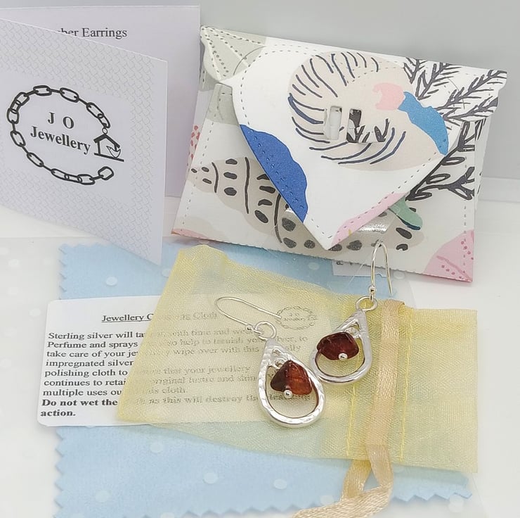 The cognac amber beads feel warm to the touch and is in the form of multi shaped pieces, so no two will be the same, these amber beads are threaded through with a solid sterling silver beaded headpin, a 3 mm round sterling silver bead has been added to the top of the amber to finish the look, connected to the inner raindrop and moving freely.