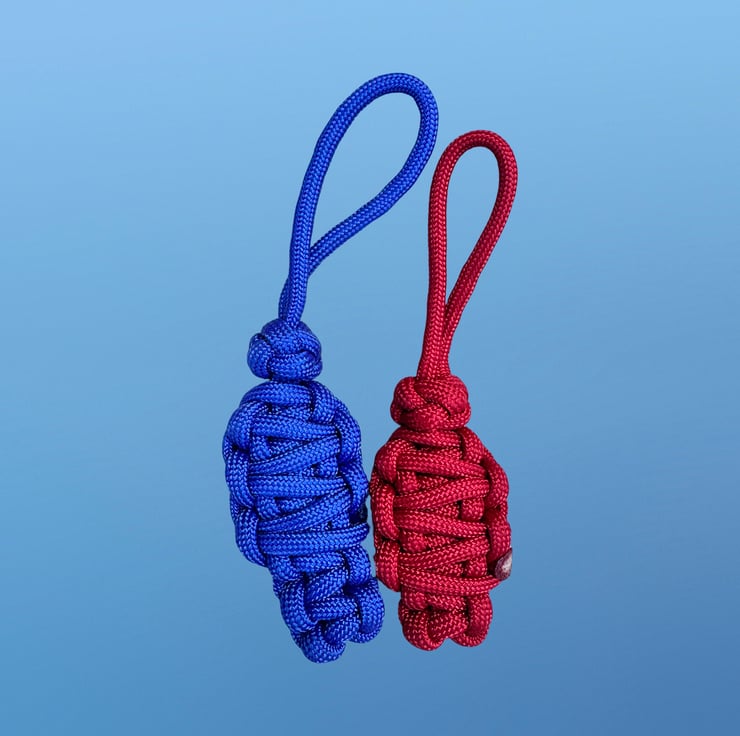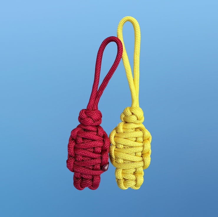 Double the unique style and durability. Our Paracord Mummy Zip Pull Duo is the perfect way to get two of our handcrafted zip pulls at a special value price. Whether you're customizing your own gear or gifting a set to a friend, this pair adds unique character to any bag, jacket, or tent. Each pull is a one-of-a-kind item, handmade on the canal in the UK.