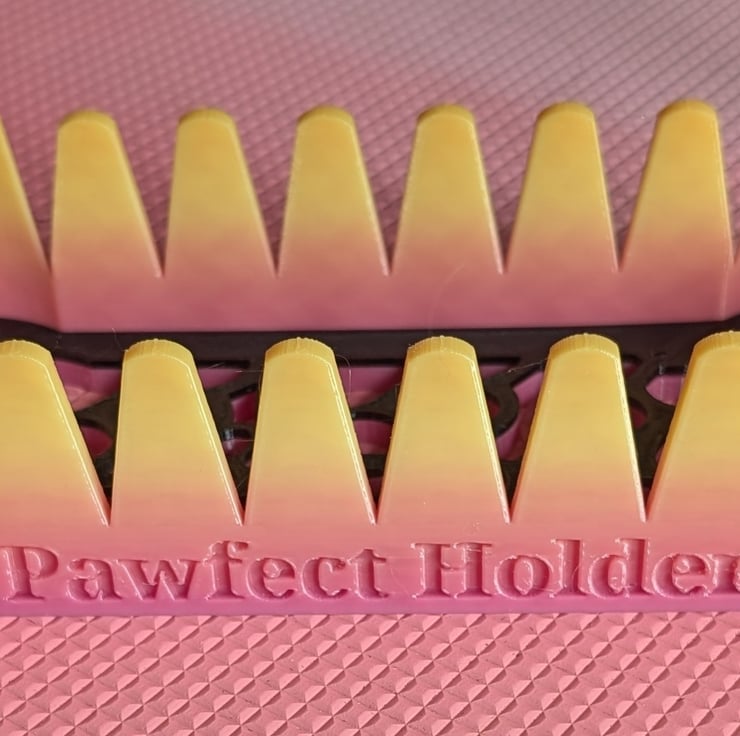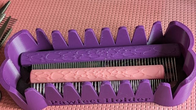 Pawfect Holder for scissors and combs holds up to eight. Length 225mm Width 93mm Height 50mm. Can be printed in same colours as our Pawfect grip handles. also within the design we have incorporated TPU for added protection of these valuable items.