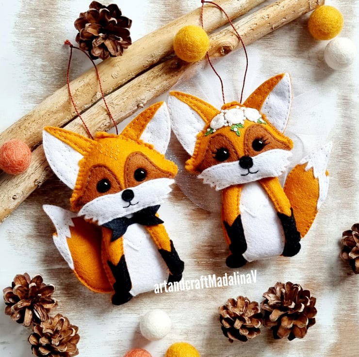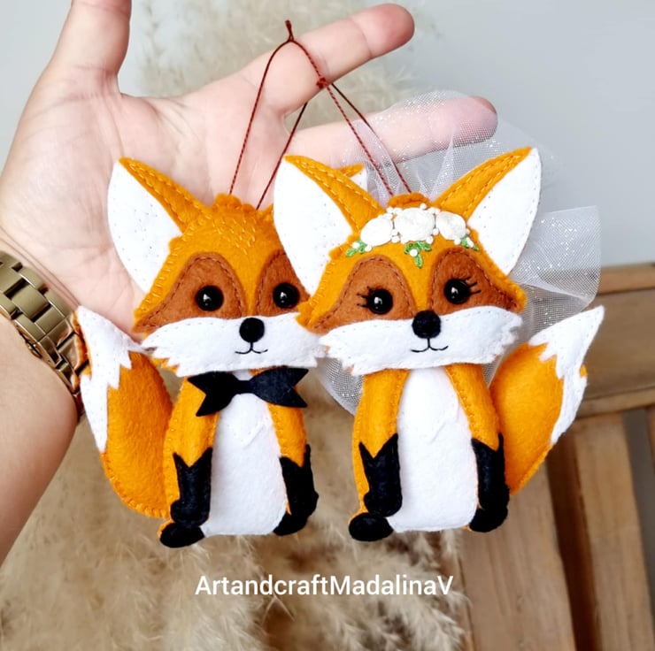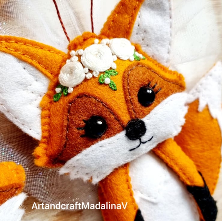 Materials: blended wool felt, polyester stuffed, cotton embroidery thread, safety eyes, veil.