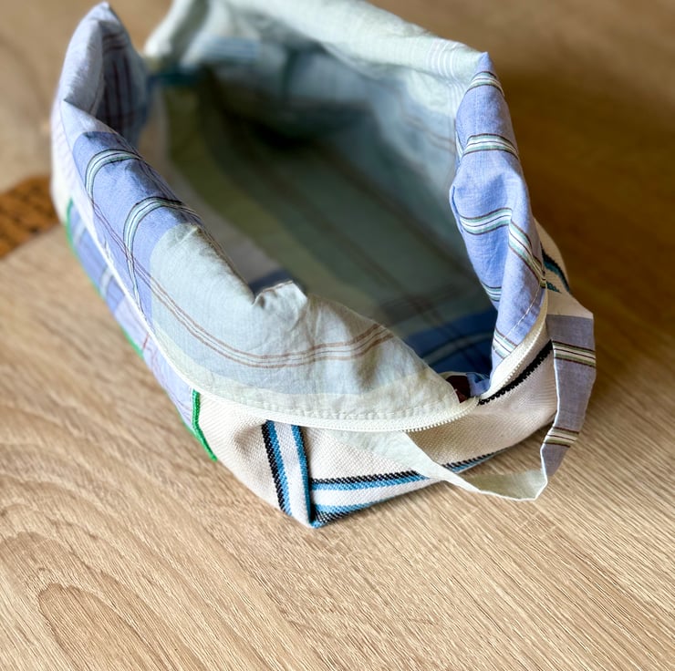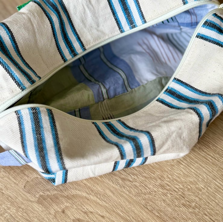 Each pouch is carefully made from second-hand 100% cotton fabrics, with a choice of green corduroy or blue striped cotton. Soft, durable, and full of character, these rescued textiles are given a second life through thoughtful, practical design.