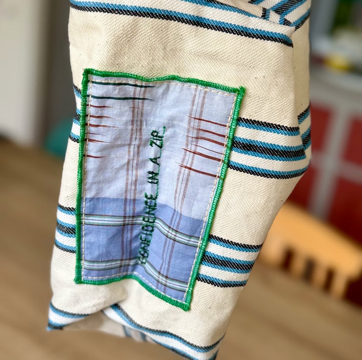 The fabrics come from second-hand sources like charity shops and remnants, often overlooked but full of potential. By rescuing these materials and giving them new purpose, we hope to show that beauty and confidence can come from the most unexpected places.