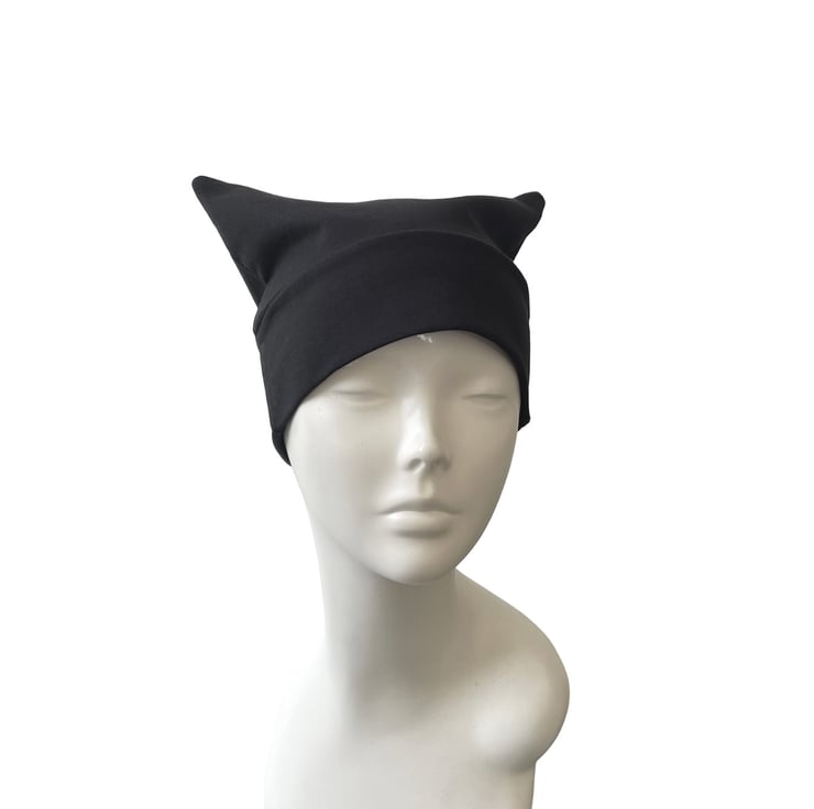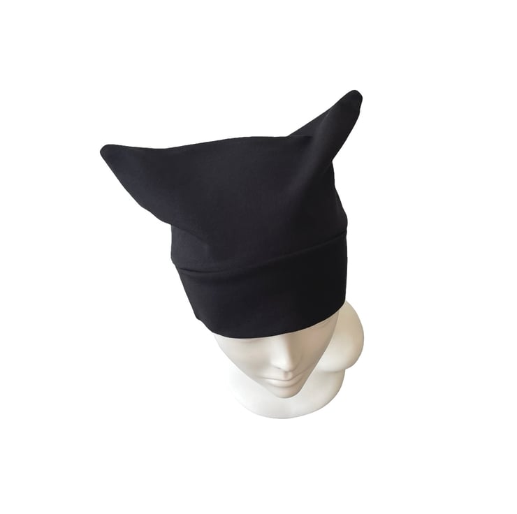 Channel your inner feline with this adorable handmade black cat ear beanie! Crafted with care from a soft jersey fabric, this comfy and cosy hat is perfect for cat lovers, cosplay fans, and anyone looking to add a little whimsy to their wardrobe.