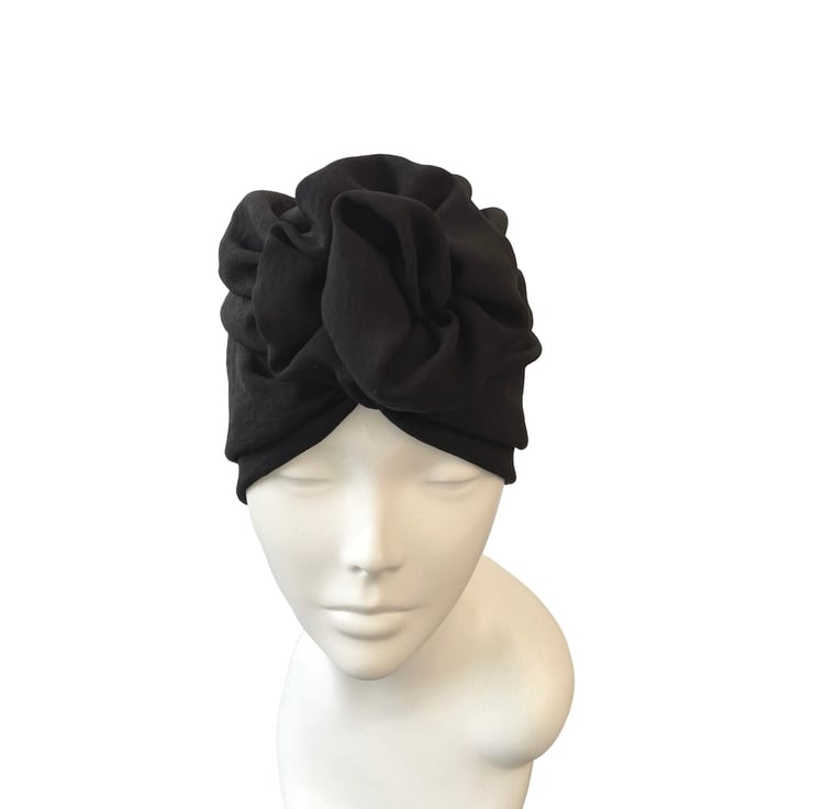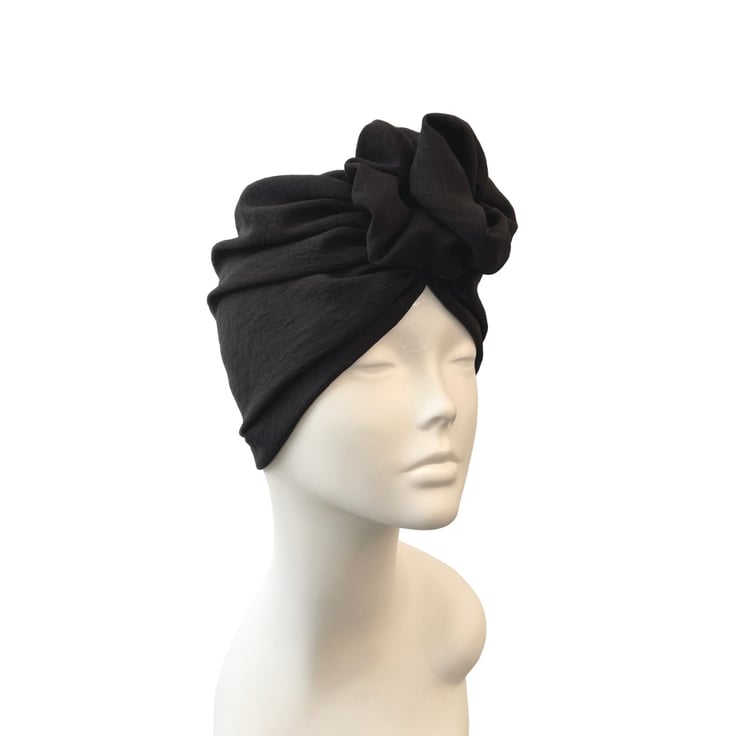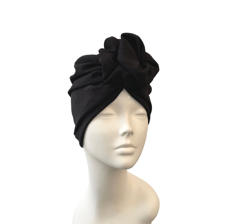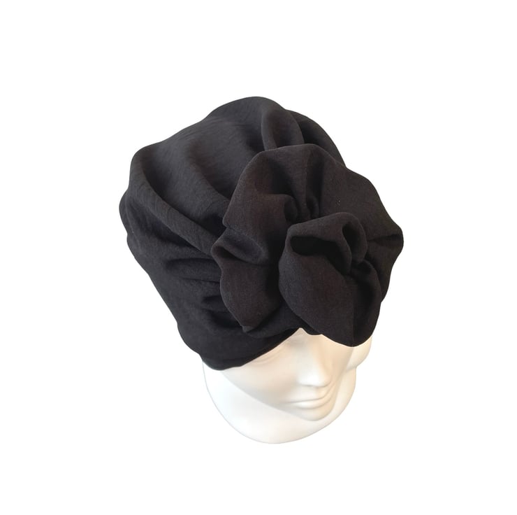 Black rosette knot turban for women