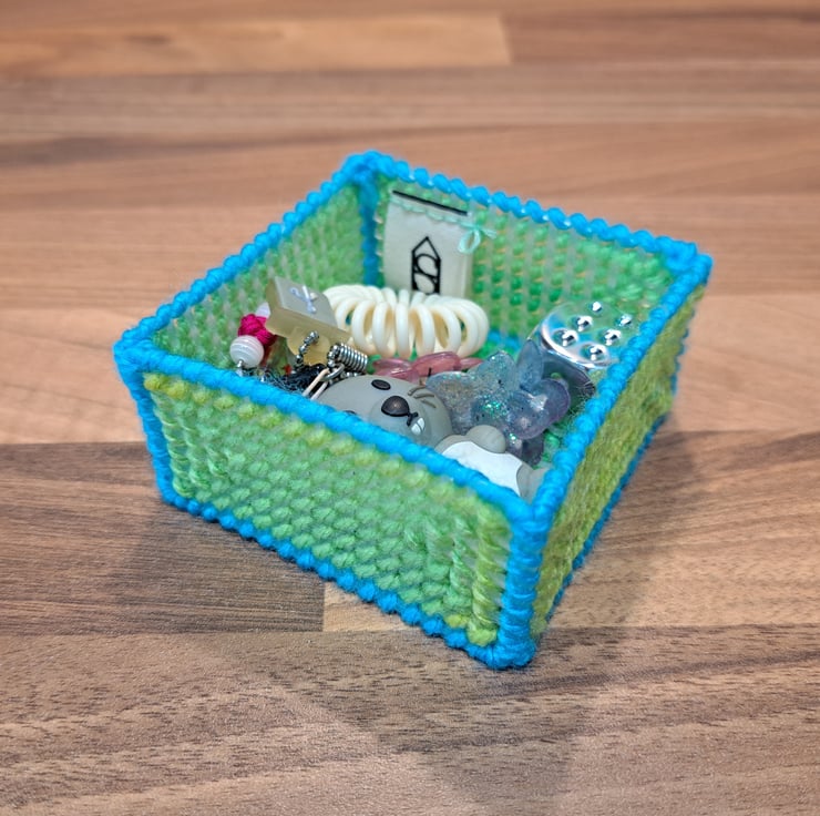 Small container to keep your desk's bits 'n' bobs in one place. Use to store USBs, erasers, rings, hair bobbles, buttons, coins, and other small items.