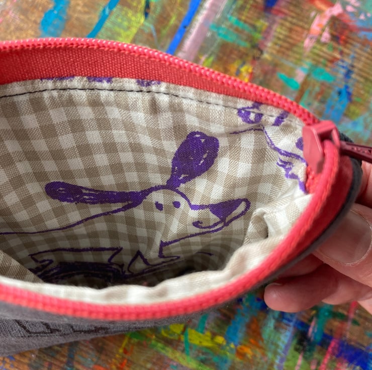 Hand screen printed purse by Jo Brown- great for coins, cards, whatever you need to keep an eye on!
