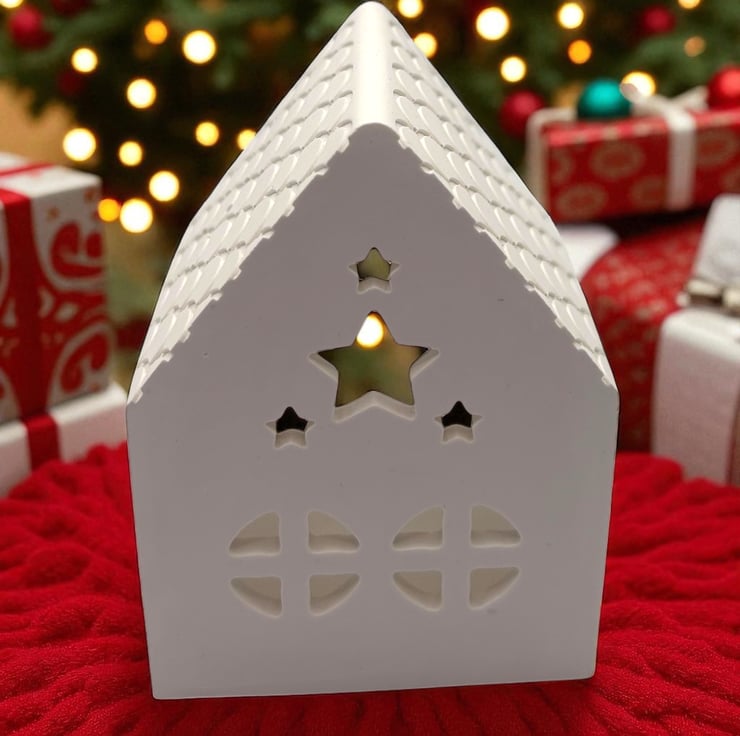 Each house is crafted from a natural water-based mineral material with a hard stone-like finish. Small air bubbles and slight variations may appear due to the handmade process and add character. All houses are open at the back, so tea lights or battery-operated lights can be placed inside.