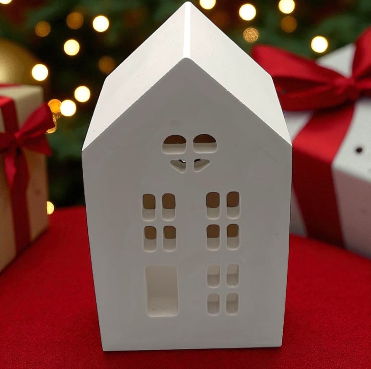 These little white houses were inspired by the calm, cosy feeling of winter evenings. I love how the cut out windows glow softly once a tea light or battery candle is placed behind them, turning a simple shape into something warm and inviting. Casting them in white keeps the look clean and peaceful, and the handmade process gives each house tiny variations that make every one feel individual. They come together as a small winter village that brings a gentle touch of seasonal magic to a shelf or mantel.