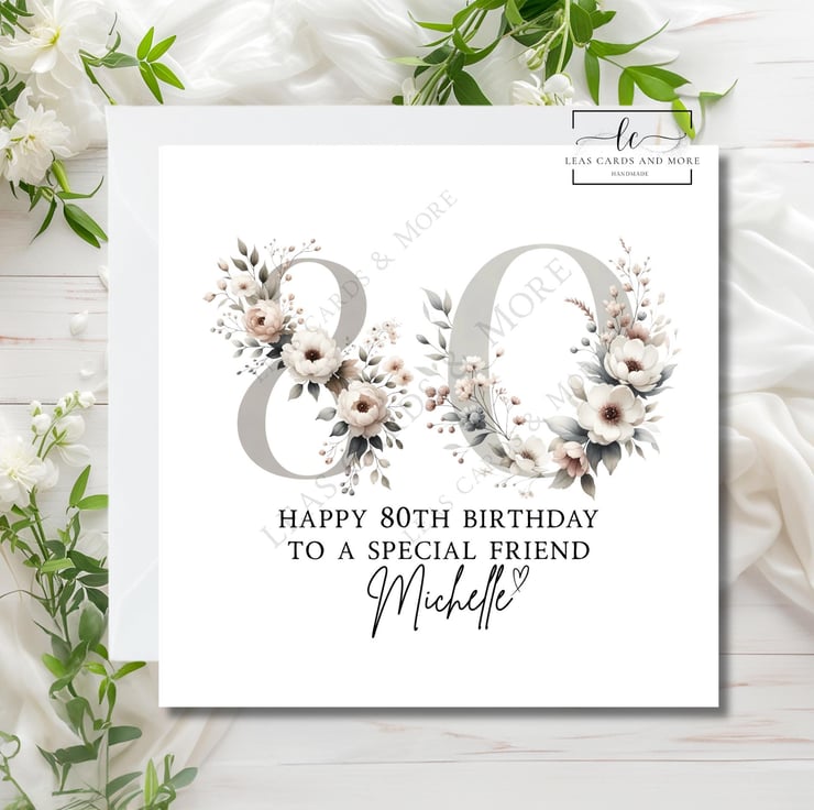 ANY AGE - Handmade Grey Rose Numbers Age Birthday Card