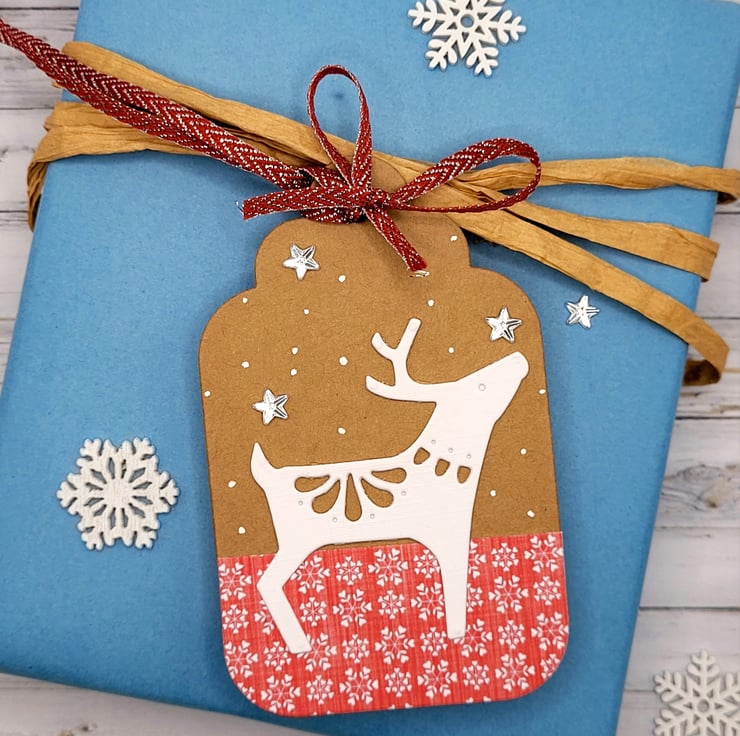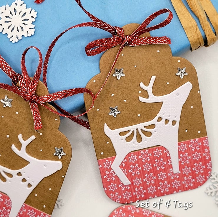 Scandi Christmas Gift Tags - Set ot 4, deer, stars, snow, handmade, kraft
