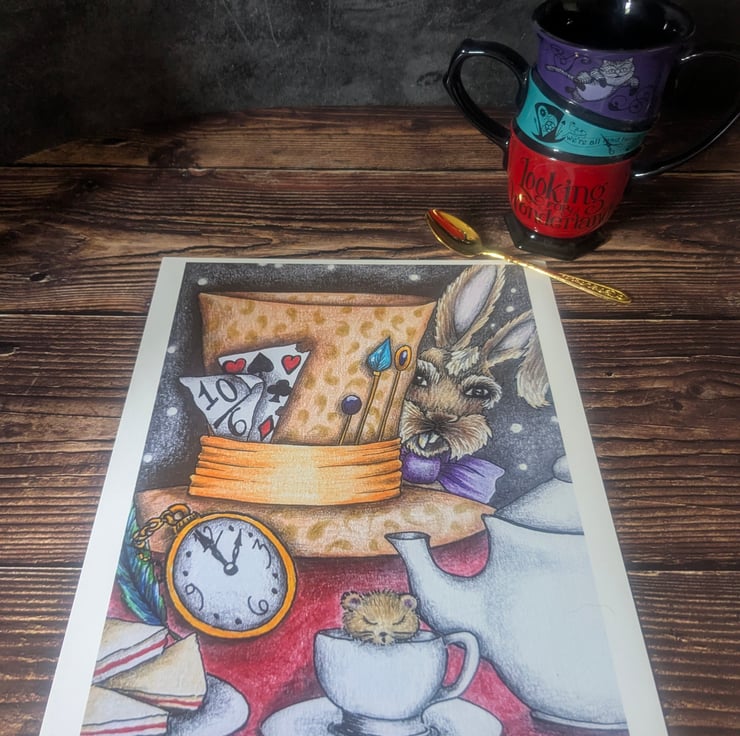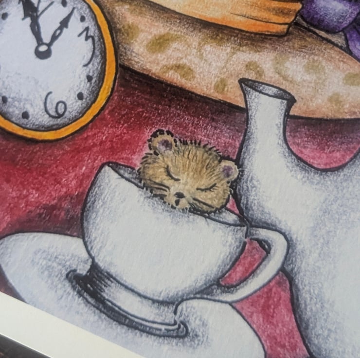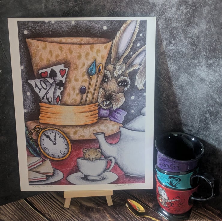 'Time For Tea ?' is a beautiful open edition print from the original artwork of artist & illustrator Dawn Patricia Jones, Celtic Willow Art.