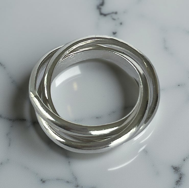 Timeless elegance with this artisan - made 3- band Russian ring, featuring solid 925 sterling silver interlinking bands. Each band is beautifully handcrafted in Woolacombe, North Devon by SilverLines Jewellery, using sustainable silver for a piece that's as ethical as it is exquisite.