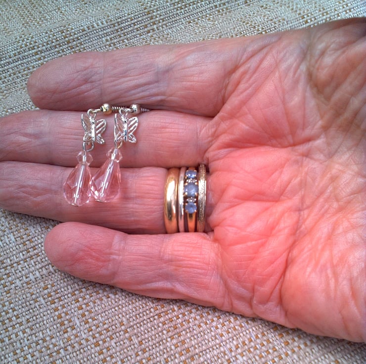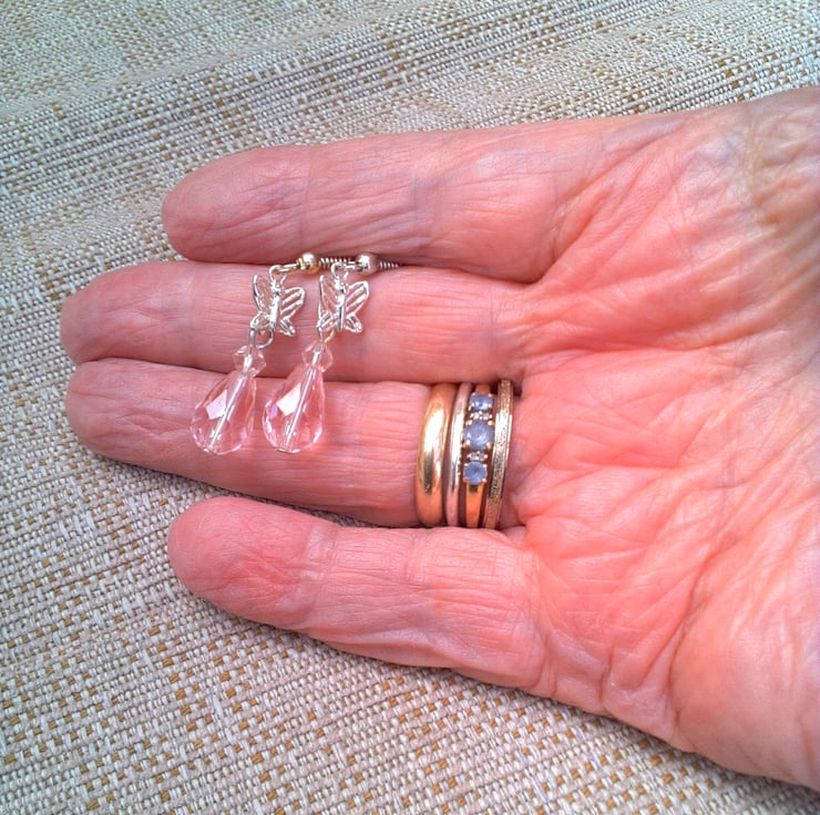 Pink Crystal Earrings with a Butterfly Bail, Butterfly Earrings, Gift for Her