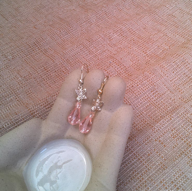 Pink Crystal Earrings with a Butterfly Bail, Butterfly Earrings, Gift for Her, Pink Earrings, Crystal Earrings, Accessories, Birthday Gift, Christmas Gift, Anniversary Gift