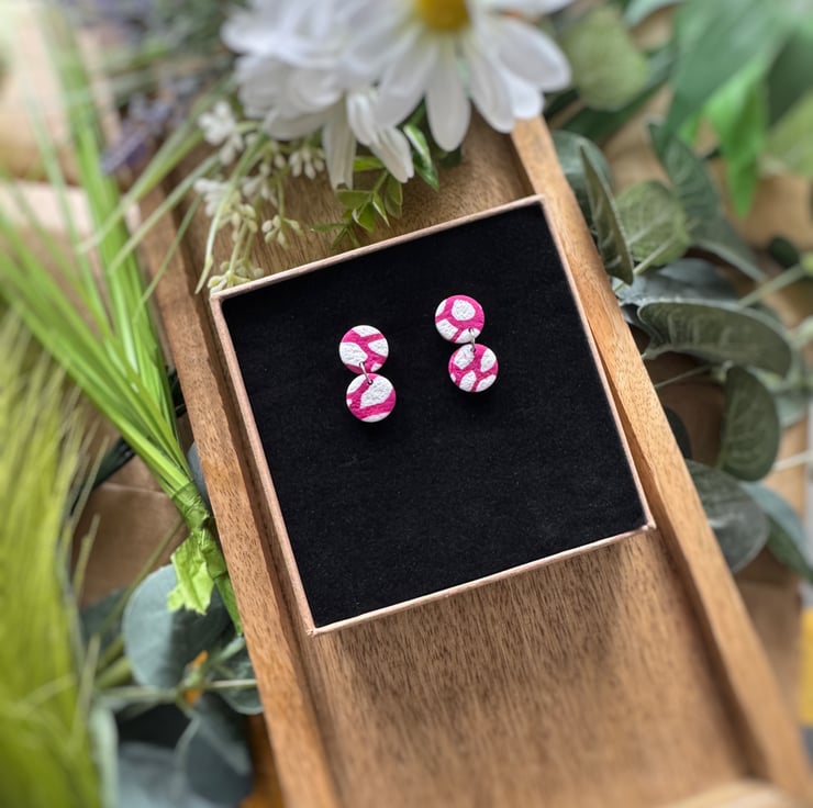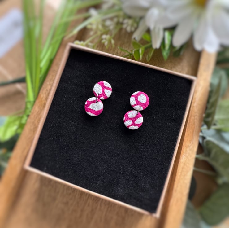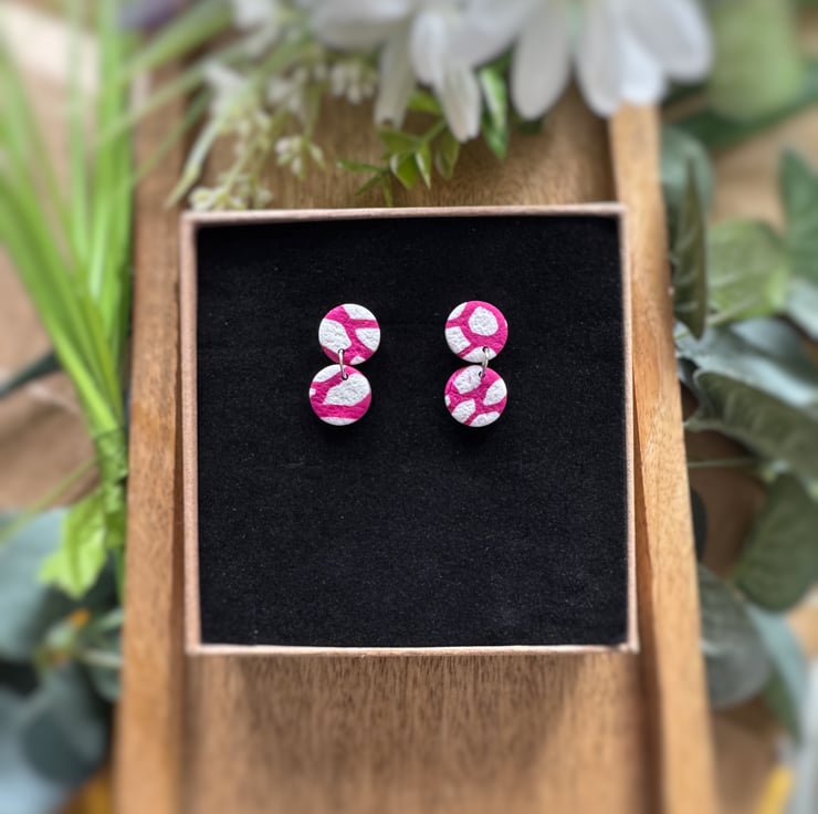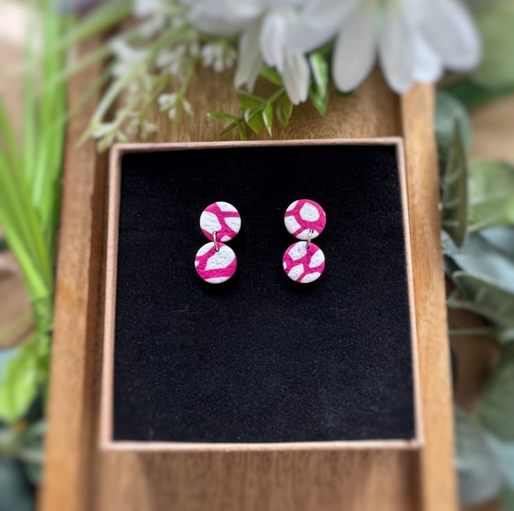 Made with white and pink polymer clay in a terrazzo styled design, with a finished matt texturised finish.