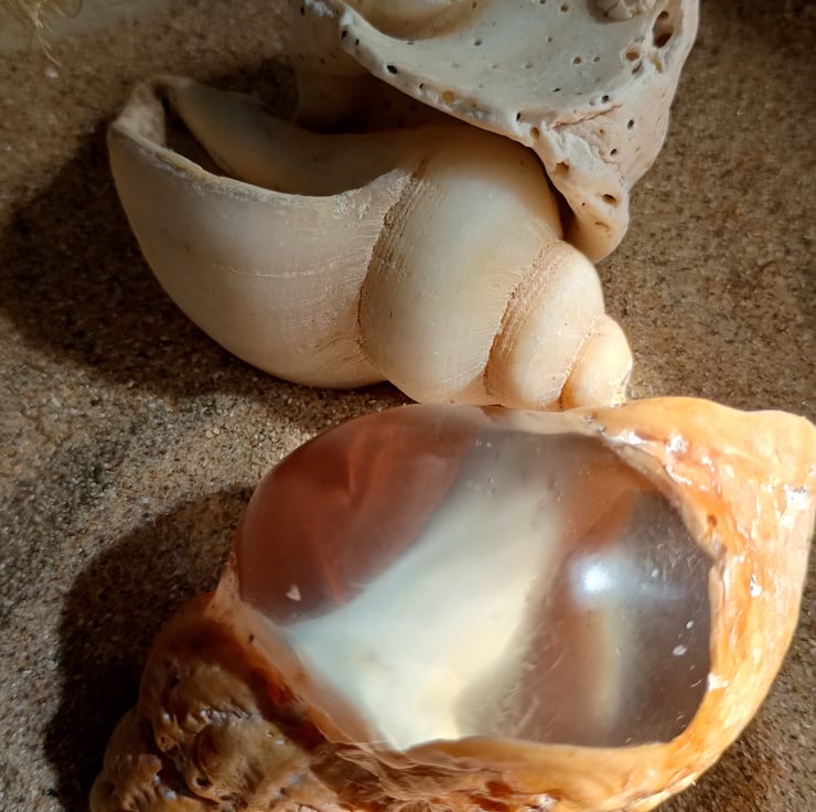 Every shell in this shop was once part of something larger — a creature, a coastline, a storm. Now, softened by the sea and filled with translucent resin, they become quiet little portals to other worlds.