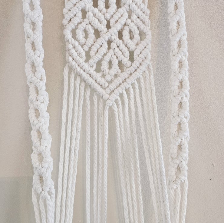 Bring a touch of bohemian charm into your home with this handmade macrame plant hanger. Crafted with high-quality 3mm natural cotton rope, this 80 cm long design perfectly combines a decorative wall hanging with a functional plant holder. Ideal for medium-sized plant pots, it adds a cozy and elegant vibe to any living room, bedroom, or office space.