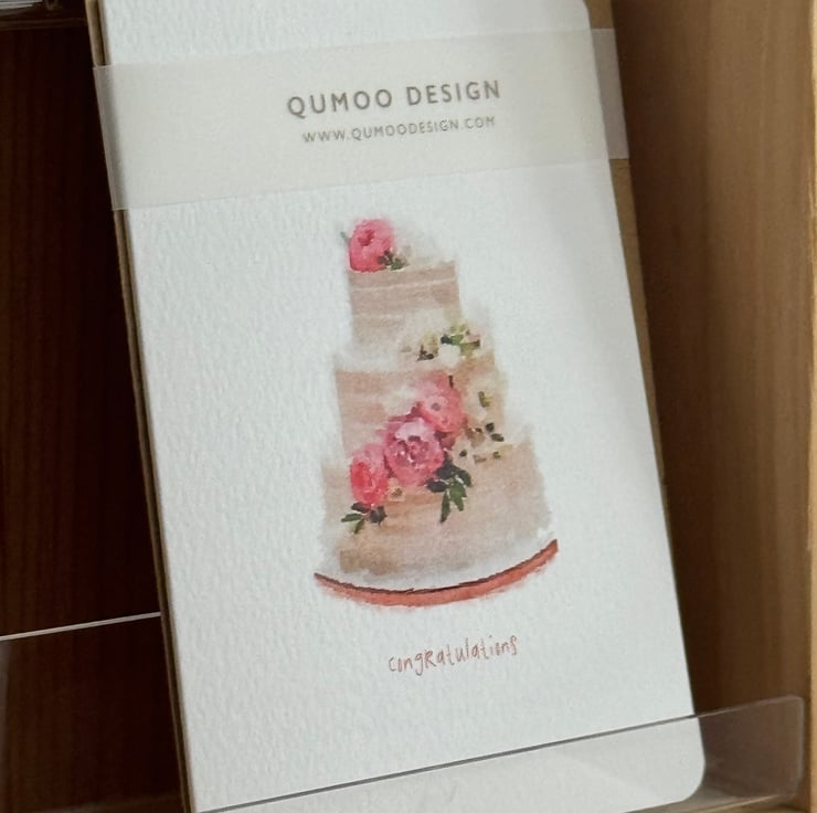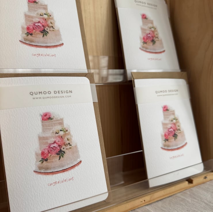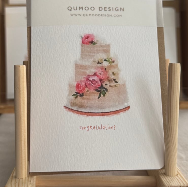 Wedding Cake Card: Spread joy and celebrate with this stylish, blank individual A6 greeting card. Options to buy individually, multipack of 5 and unframed mounted.
