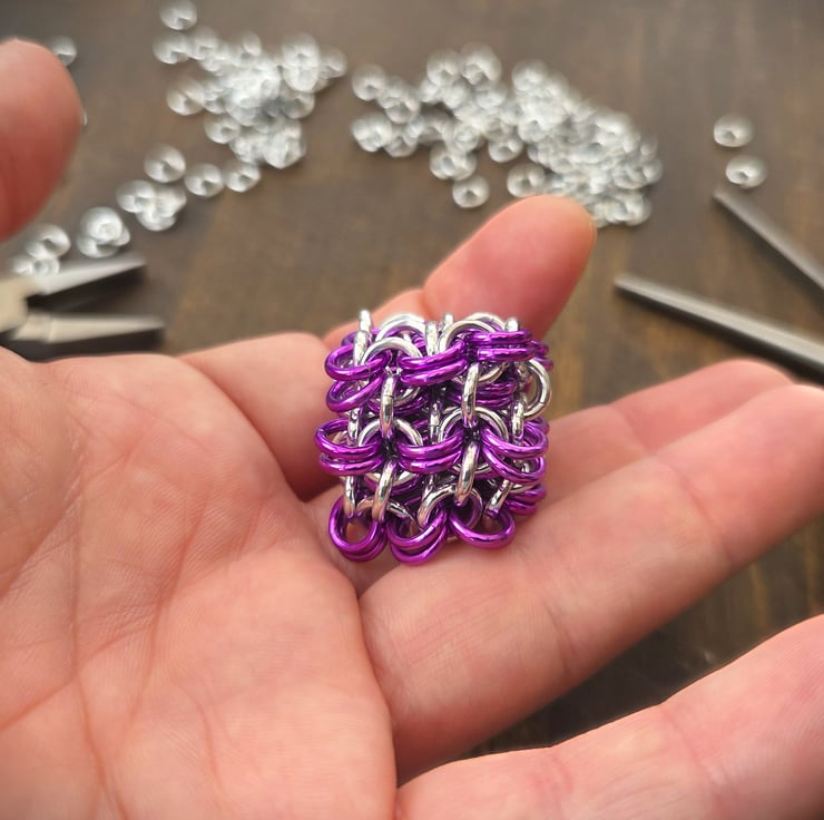 As an AuDHD person married to an autistic person, fidgeting is a big thing in my home. We've used hair clips, food clips, bubble wrap, and plenty of bespoke fidget toys. When I started making chainmaille items, it was inevitable that I'd create fidget toys. I've been refining my fidget cubes and sheets for a while now (for personal use, the mini fidget cubes are our favourite), and I'm confident you'll love yours.