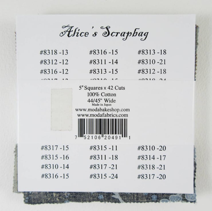 A complete charm pack containing forty-two 5inch, 100% cotton, squares. Fabric collection designed by Barbara Brackman for Moda, inspired by the fabric prints of the American Civil War. These reproduction prints are in rich, saturated shades of blue, red, pink, green, tan and cream.