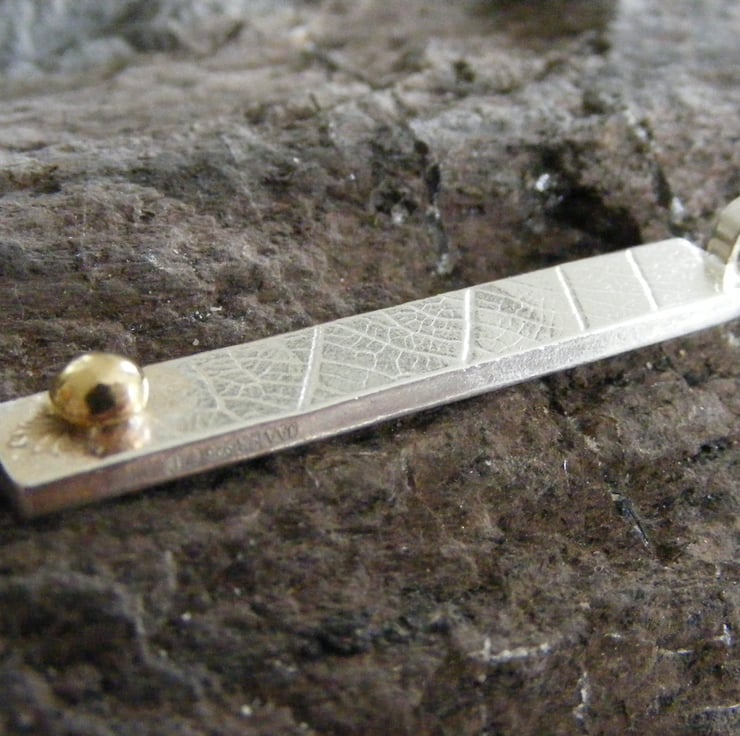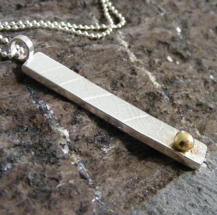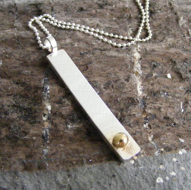 A beautifl and moddern bar pendant, crafted in sterling silver with a substantial 18ct gold accent.