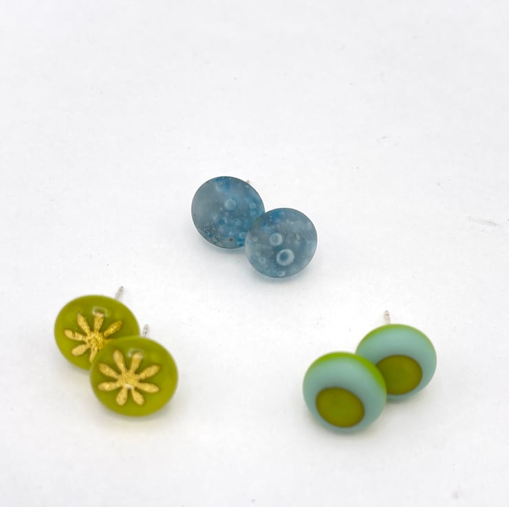 Kiln fused glass has a natural fluid quality and no two pieces are exactly the same. Earrings are created as a matching set but there will always be slight differences between the two and that's what's so lovely about buying handmade!