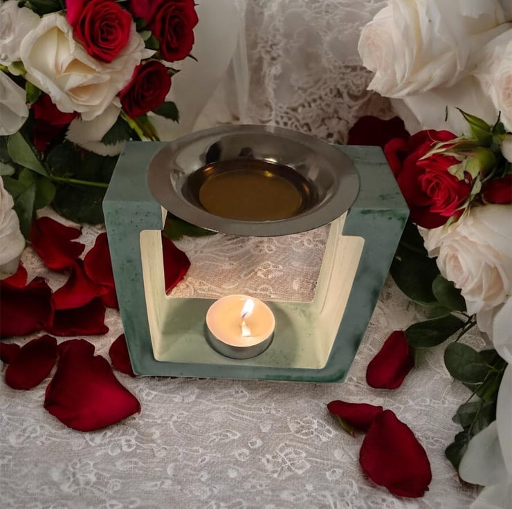 Hand-poured with eco-resin, each burner features subtle variations in marbling, making every piece truly one of a kind. Ideal for romantic settings, relaxing evenings, or as a meaningful handmade gift.