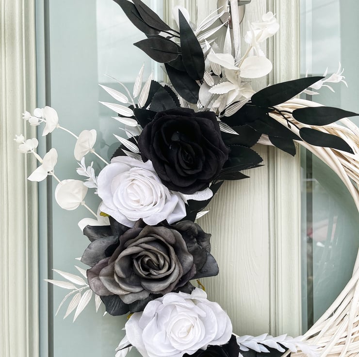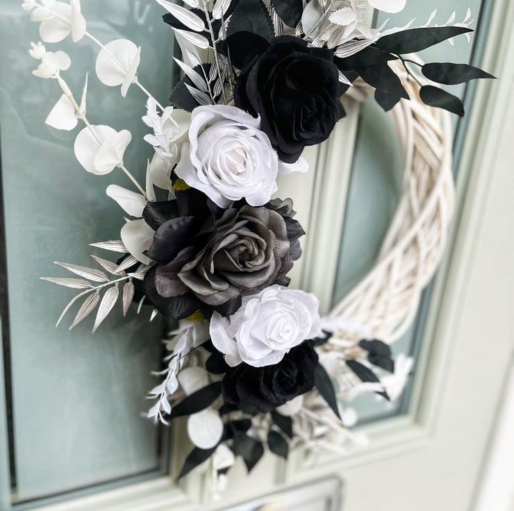 This black and white artificial wreath is perfect for anyone looking for something a bit different. The black and white colour works perfectly for Halloween or for the whole year round for fans of black and white.