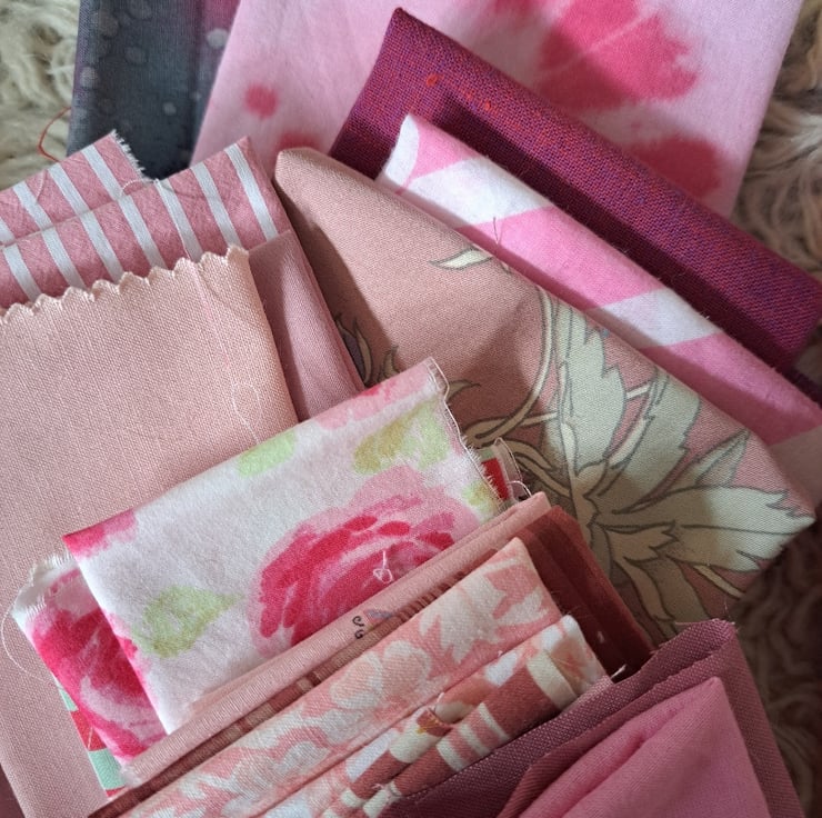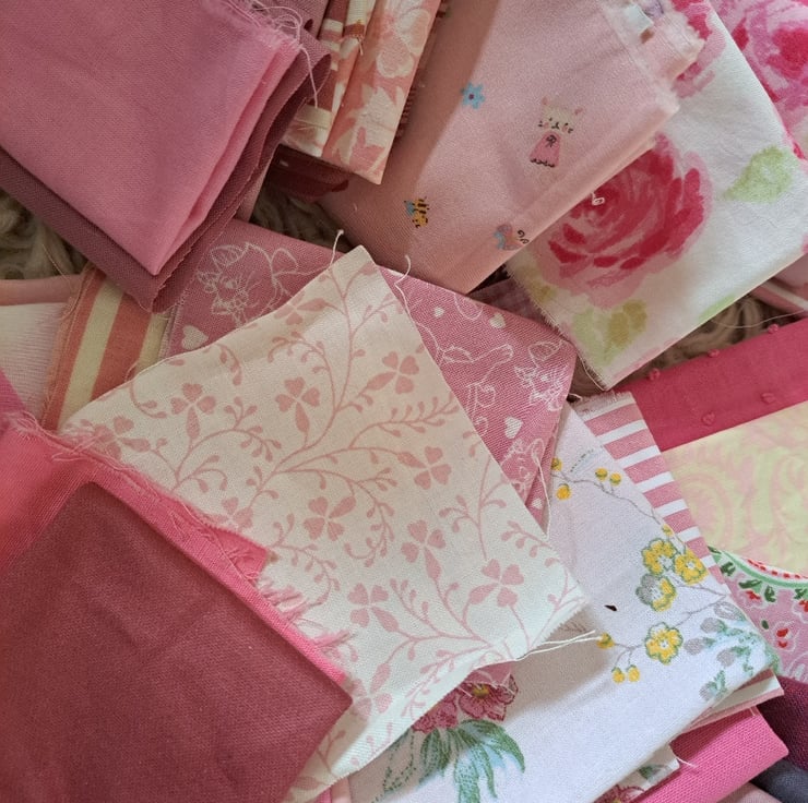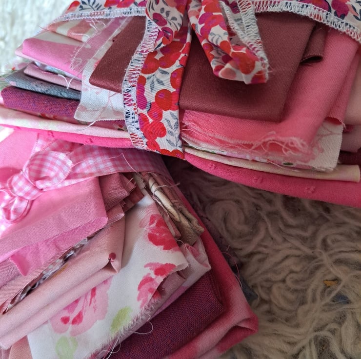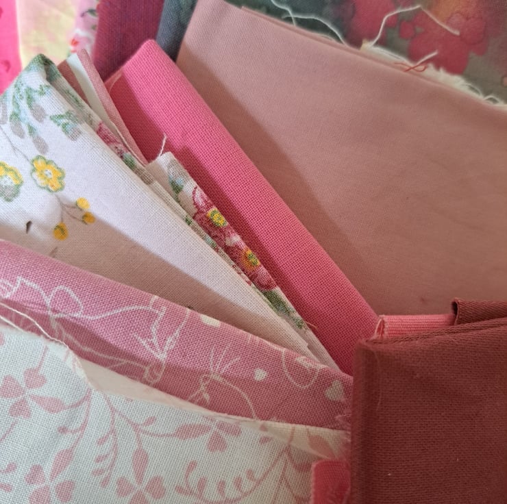 Nice chunky bundles of vintage, remnant and repurposed cotton fabrics in various shapes and sizes and containing around 18 pieces each. From blush to cerise and from candy to fuchsia, these bundles have got every pink covered.