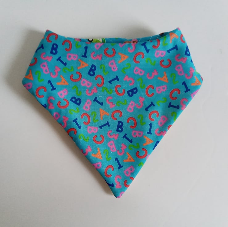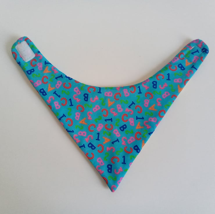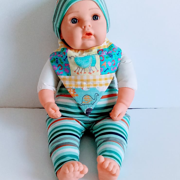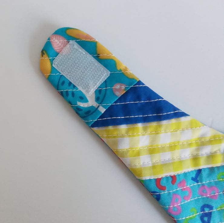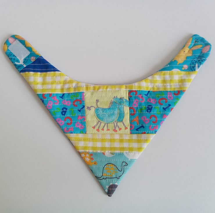 A patchwork & quilted OOAK bib with a velcro fastening for an adjustable fit.
