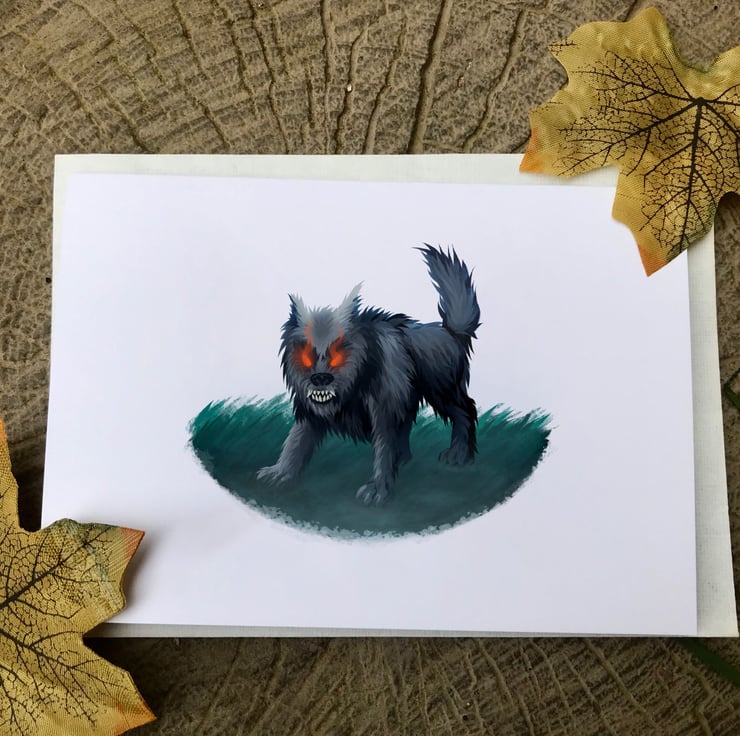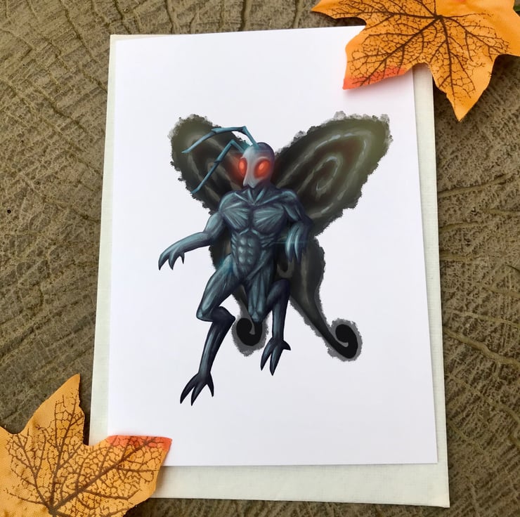 A Cryptid Creature design blank greeting card with white envelope by DuffleCat Prints (Damian Case)