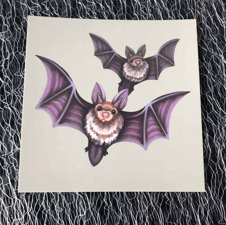 A square post card by DuffleCat Prints (Artist Damian Case). Front of card with design on is matt coated. Back of card is blank and uncoated for your message. Postcard is 120mm x 120mm, 330gsm card stock.