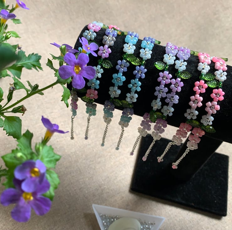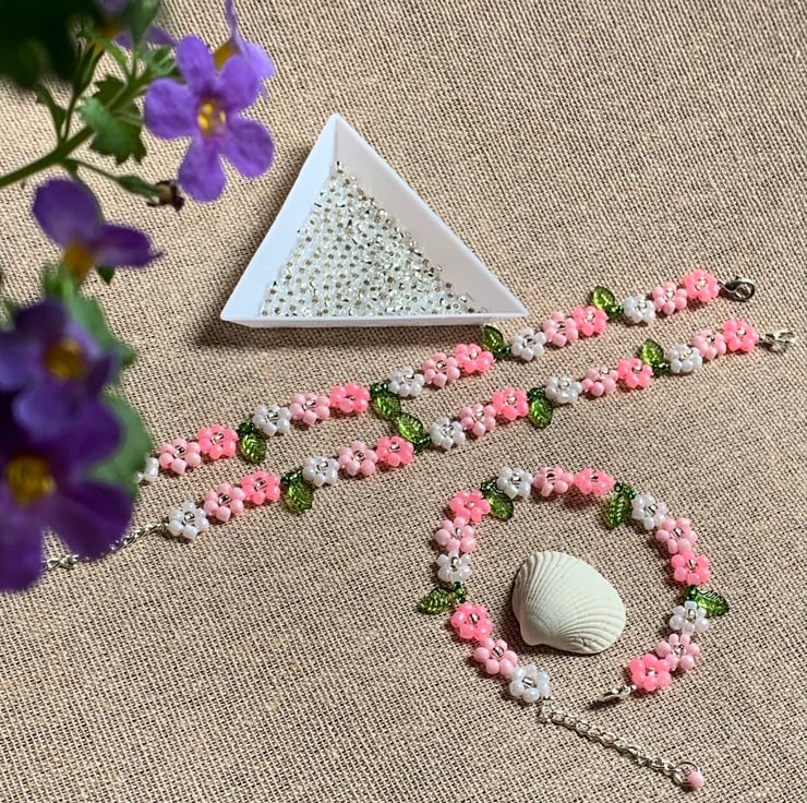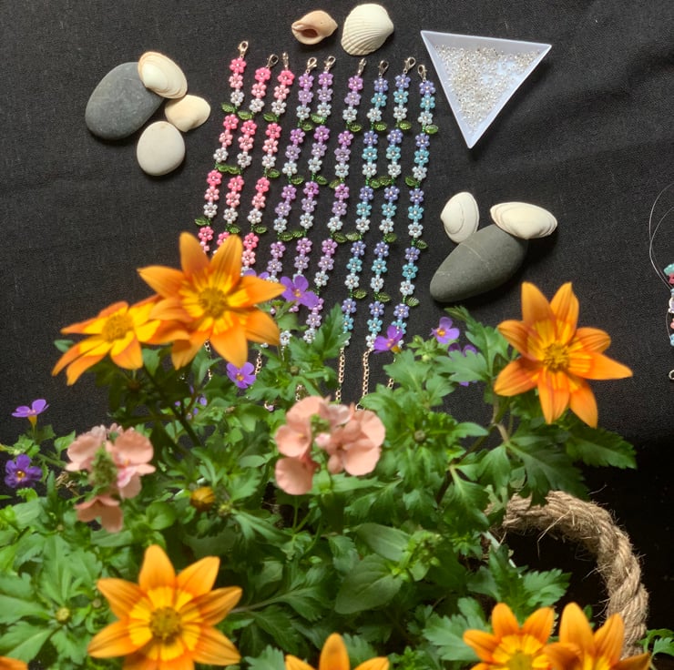 Handmade daisy bracele. 18cm long approx bracelet with 3cm extension chain , made with 3 mm beads, can be custom made with different length, colour and design, just message me with your choice. Pink , blue, purple and mix colour design ready for order. Any questions please feel free to send me a message.