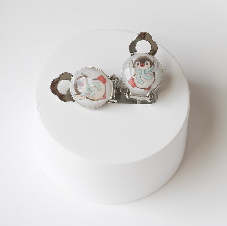 Add a festive touch to your holiday outfits with these charming vintage-style clip-on earrings! Perfect for those without pierced ears, these earrings feature two delightful designs: one with a cozy red heart pattern and the other with an adorable Christmas penguin.
