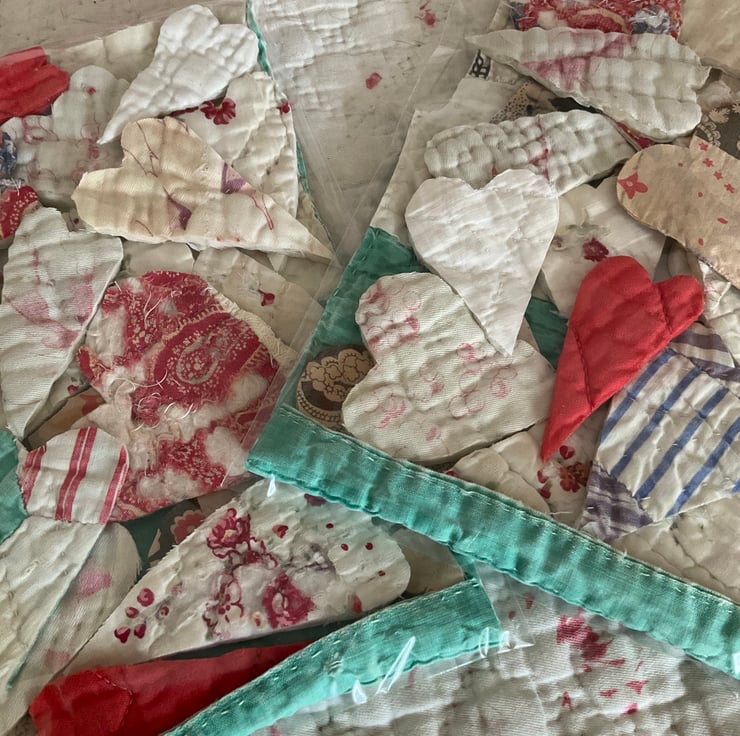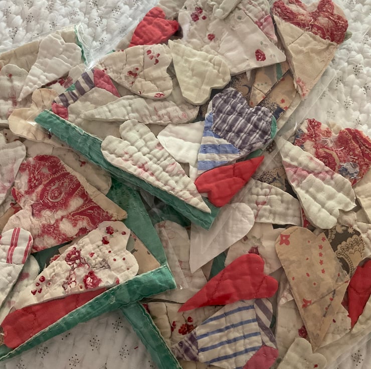 Please note that these hearts have all been cut from vintage quilts and some have imperfections commensurate with their age, which only adds to the charm and texture of your finished creations.