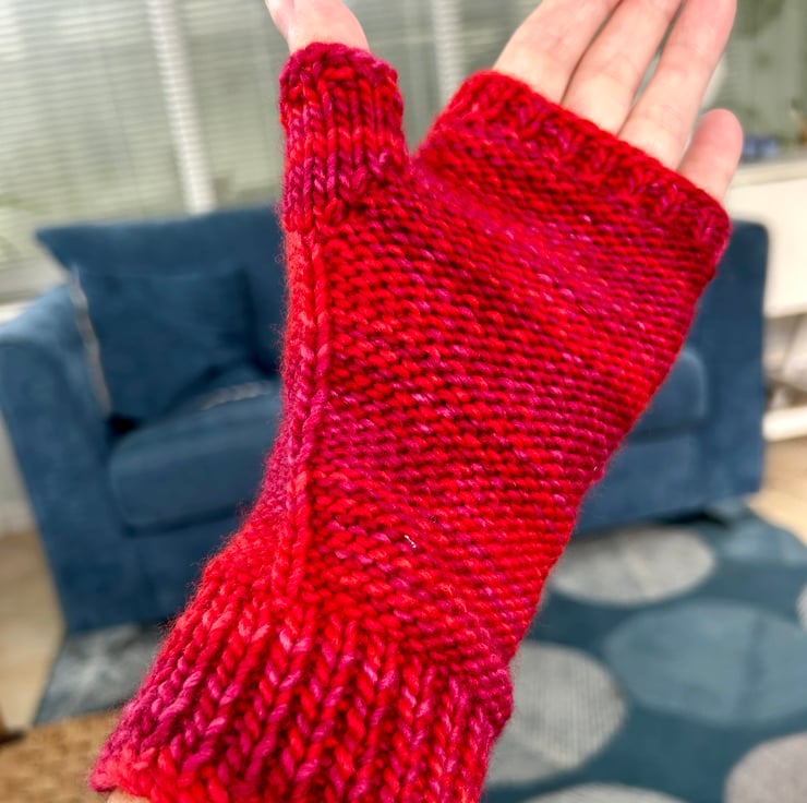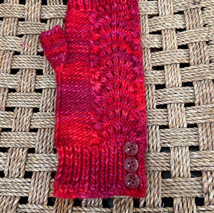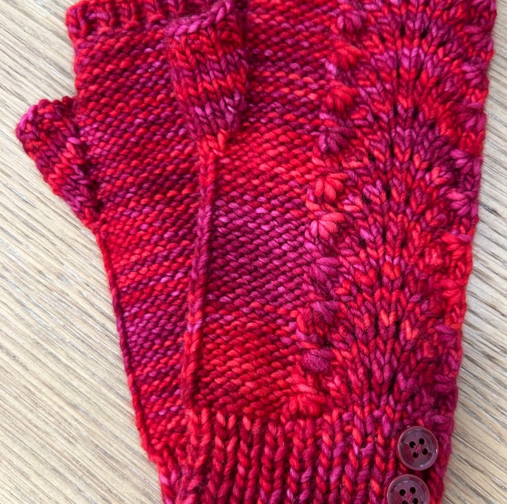 The ever popular design of my knitted fingerless gloves is enhanced by this fabulous pure merino wool. It’s so soft and the mix of colours is fabulous.