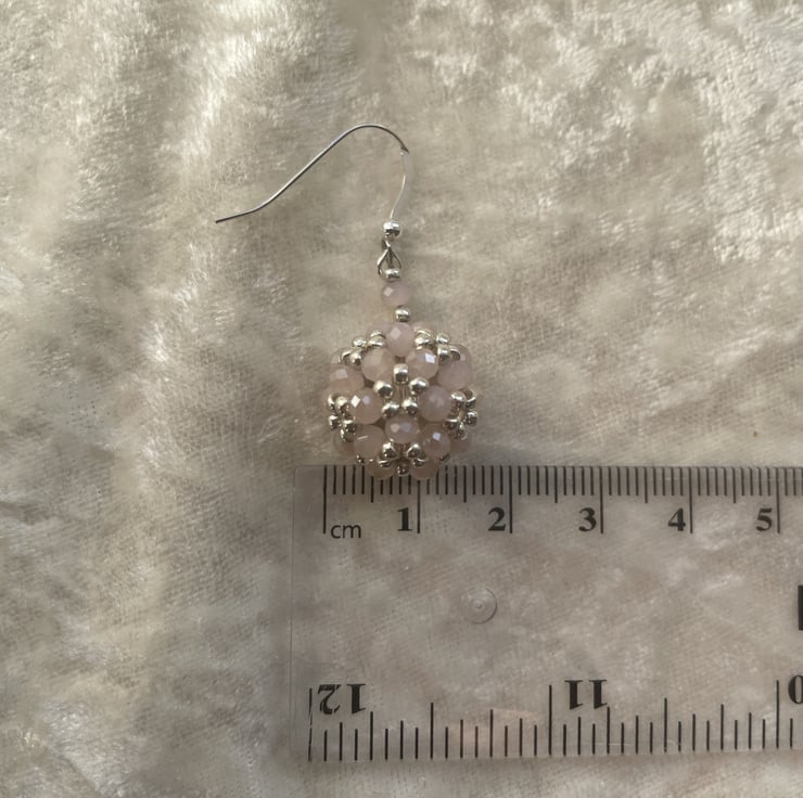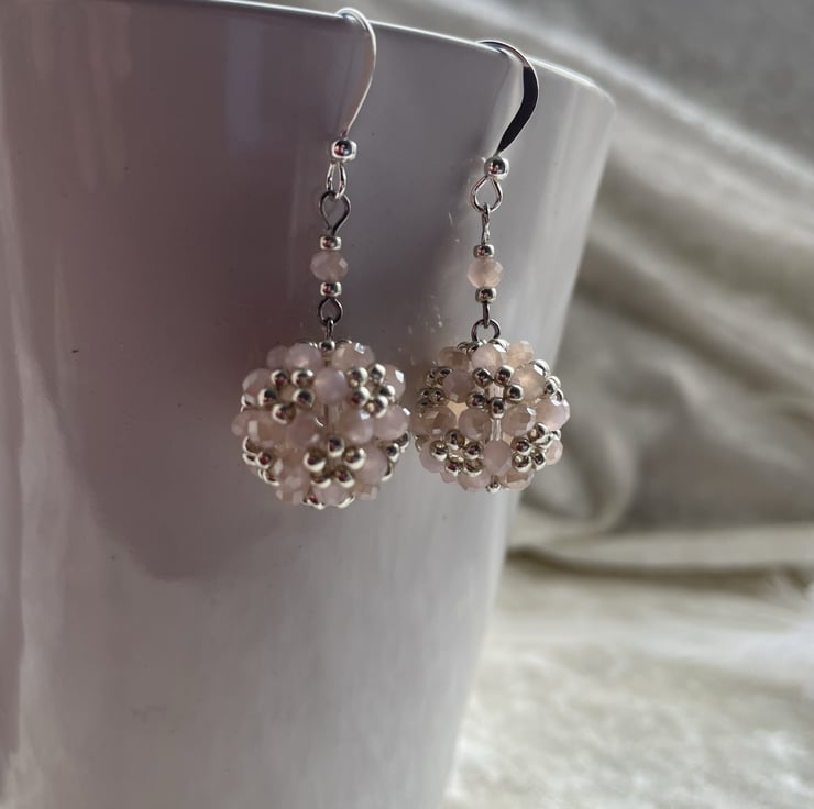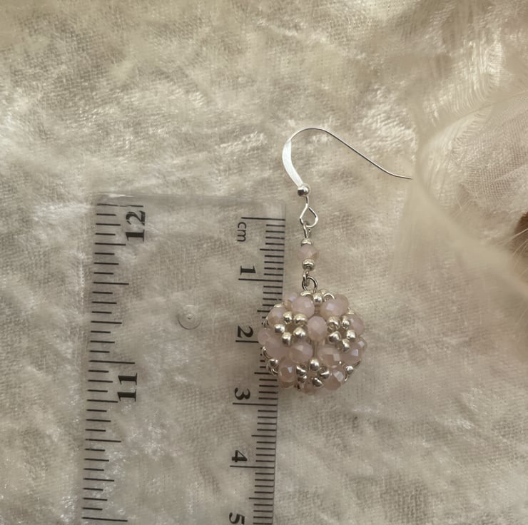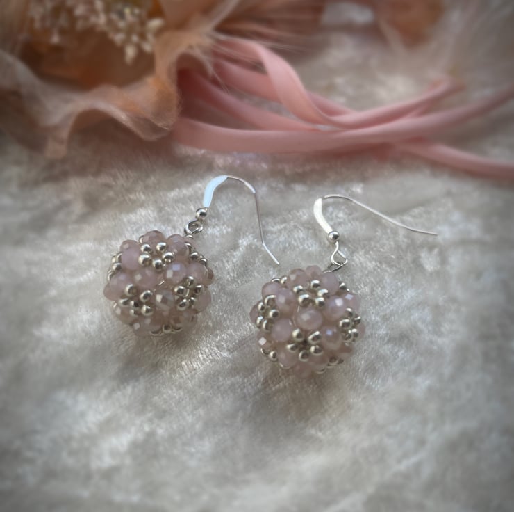 These Pale Pink Beaded Ball Earrings are a delicate and stylish addition to any outfit. Handmade with pink glass beads and light white gold Japanese seed beads. These round earrings are 2.8cm in length and feature a pierced ear closure. The simplicity and elegance of these earrings make them a versatile choice for both casual and formal occasions, adding a touch of feminine charm to any look. Perfect for those who appreciate unique and artisanal pieces, these earrings are a must-have for any jewellery collection.