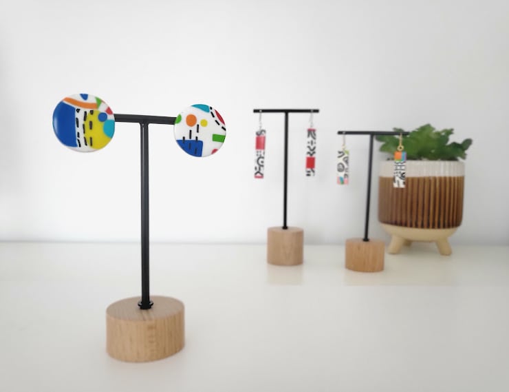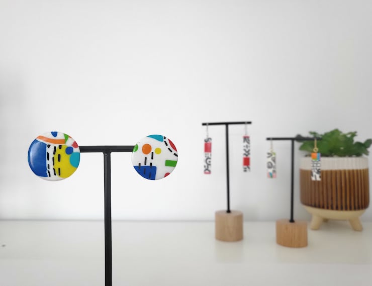 Our 'Abstract Pop' collection is a vibrant celebration of bold design and playful artistry. Inspired by the dynamic energy of abstract expressionism and the iconic Memphis Design Group, each earring is a miniature canvas of modern art.