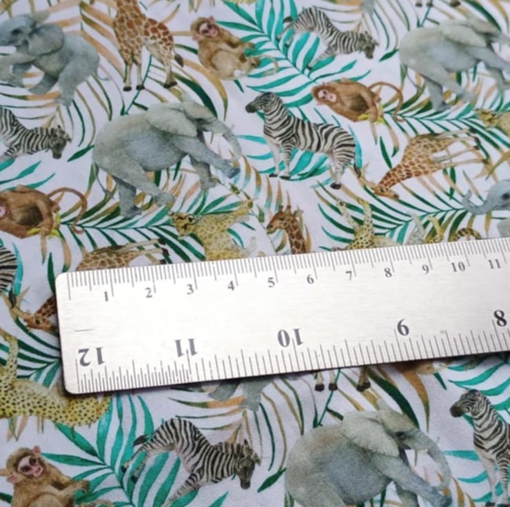 Size - the quilting cottons are a standard FQ (50 by 55cm), the safari poplin is wider (50 by 70cm).