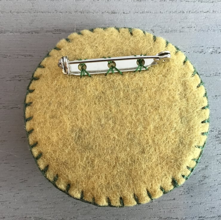 This brooch is 2 inches (6 cms) in size….a nice wearable size. A metal brooch pin with a safety catch for secure wear is sewn on the back.